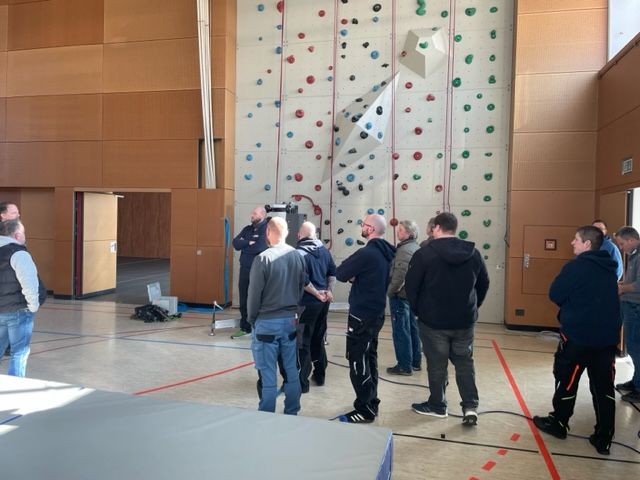 Im März 2024 fand als Inhouseseminar bei unserem Mitglied Hessische Sportstätten GmbH eine für alle Mitglieder offene Schulung zum Thema Inspektion und Wartung künstlicher Kletteranlagen KKA statt.